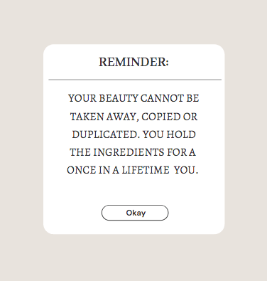 I encourage you to think about what makes you, you. Jot them down, read them and re read them, think back on things people have noticed about who you are and dwell on the beautiful, different things about you. These things aren’t physical, in fact that’s the whole story of inner beauty. Inner beauty encompasses the ideas that the very most beautiful things about us are the things that maybe we don’t even see as beautiful. Maybe they’re things that we didn’t even realized fit in that category. Those are the things that make you, you. Embrace them, channel them, love them! There is indeed only one of you and we need you here! We need your kinda pretty.